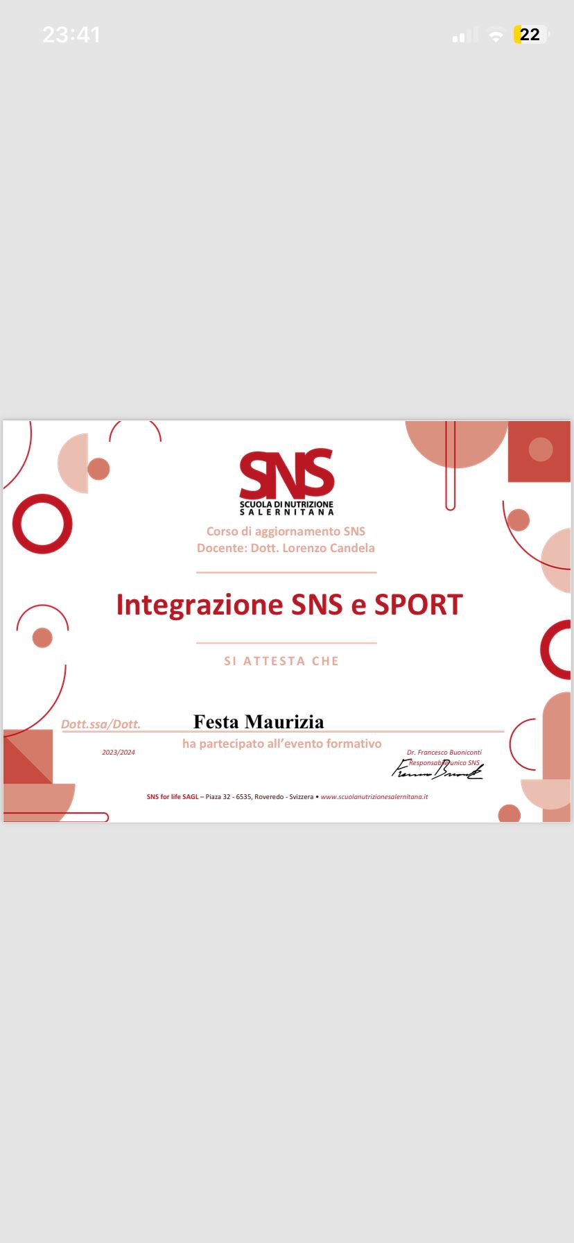 La dott.ssa Festa è fantastica! Grazie al suo piano alimentare personalizzato e ai suoi incoraggiamenti, ho raggiunto il mio obiettivo di miglioramento dello stile di vita. La consiglio vivamente a chiunque cerchi una nutrizionista competente.