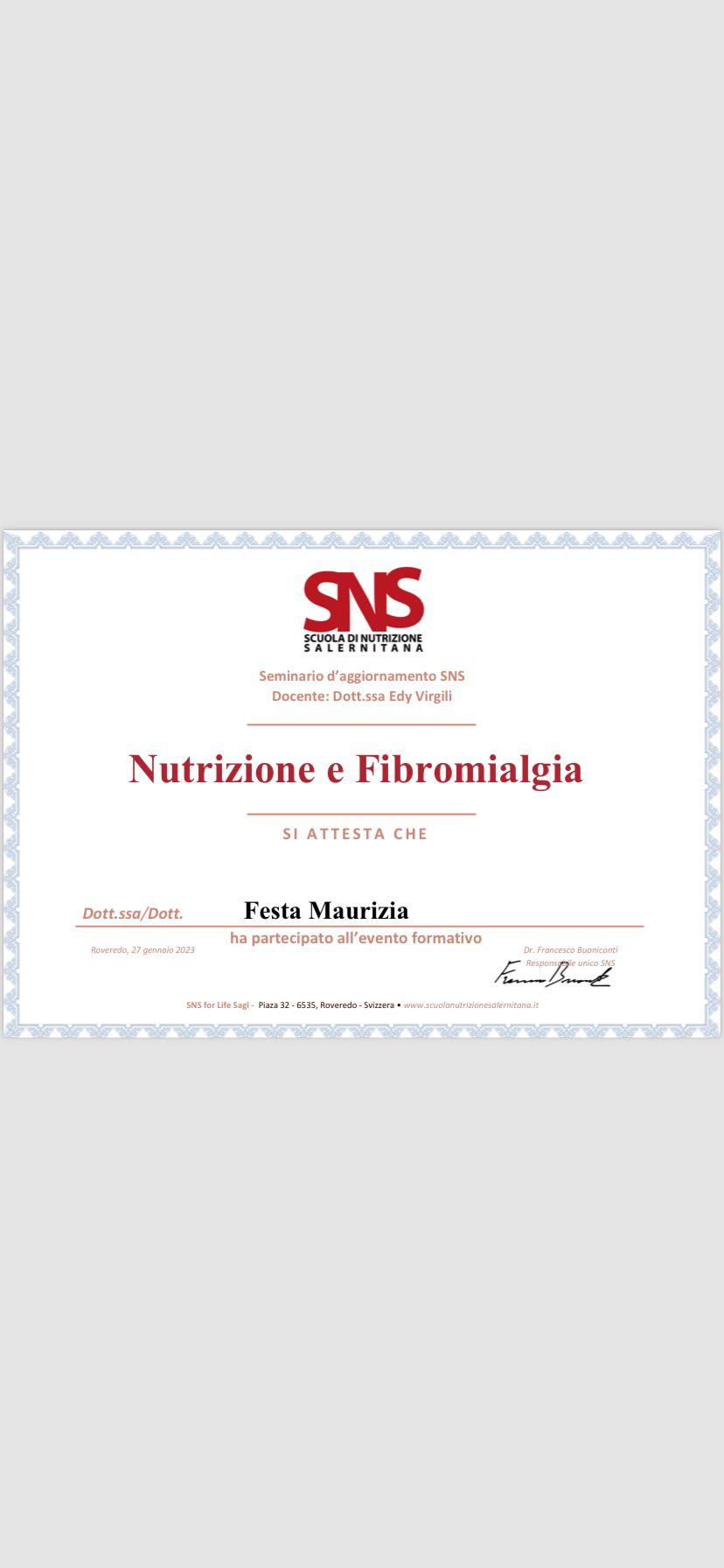 Consiglio vivamente ad altri pazienti la visita con la dr.ssa Maurizia Festa.